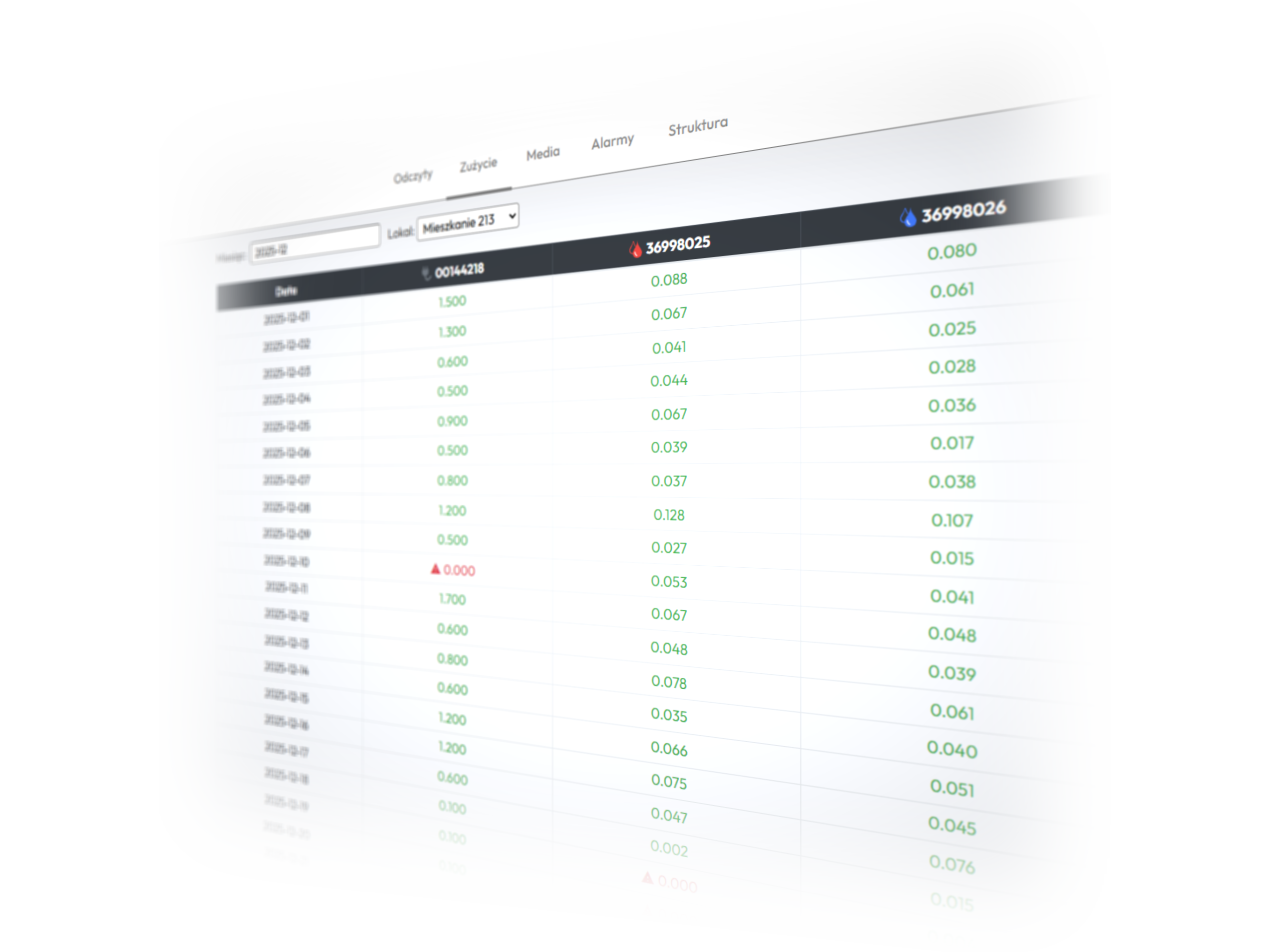 Odczyty spływają bezobsługowo, są porządkowane, archiwizowane i analizowane, a w przypadku nieprawidłowości system natychmiast informuje użytkownika.